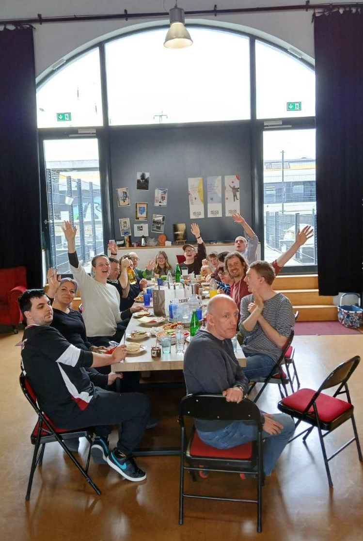 Bevor wir in die Sommerpause verschwinden, haben wir noch ein paar Termin-Hinweise für euch. Nämlich: Die Premiere unseres neuen Stücks „Nie wieder! Vor allem auch nicht mit uns.“ findet am 11. September 2025 statt. Weitere Vorstellungen sind für den 13. und 14. September geplant. Und zwei Wochen später fahren wir für ein Gastspiel zum HuckePack-Festival nach Kevelaer.